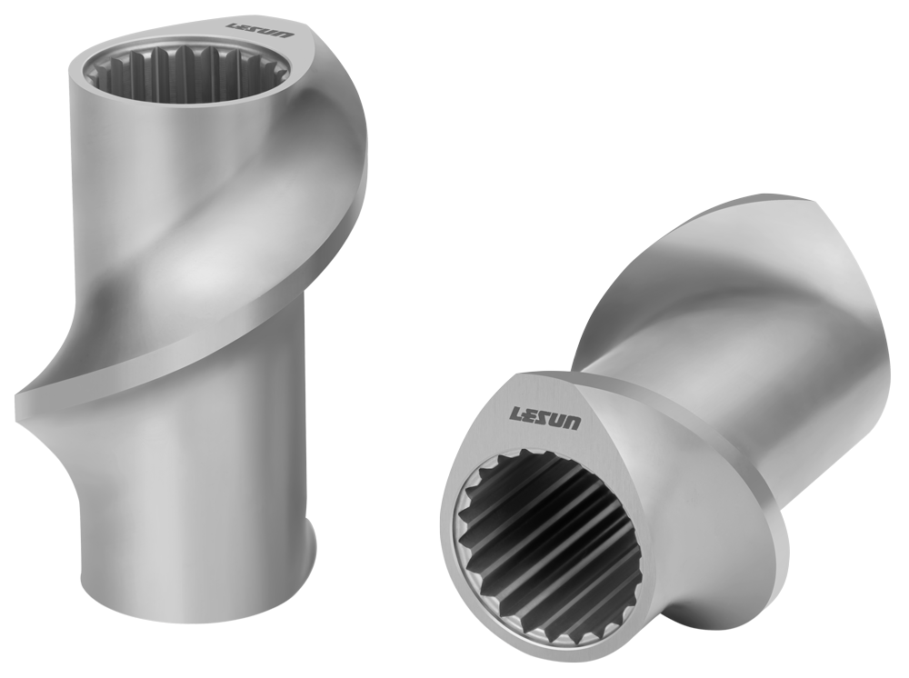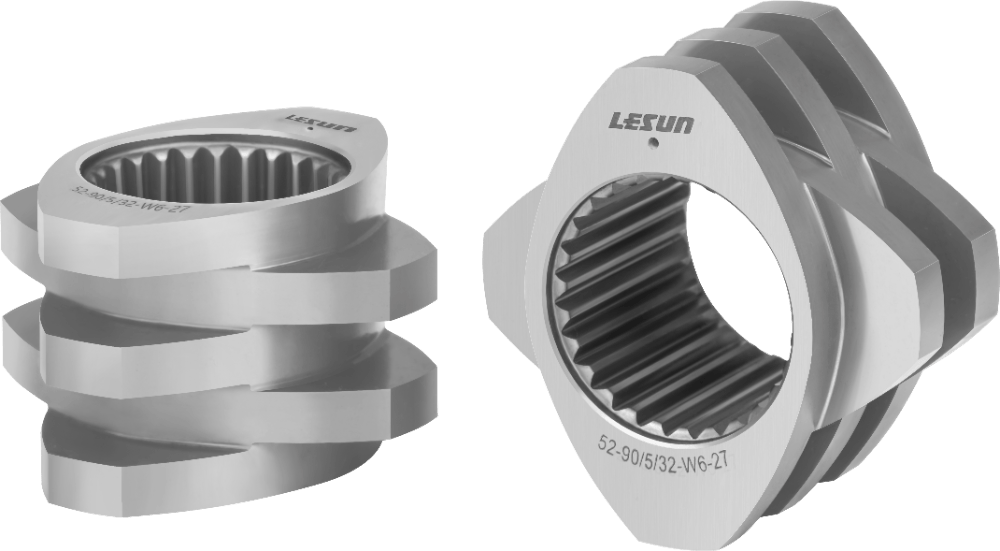 输送元件的主要作用是高效稳定的将物料在机筒内正位移推动,导程的大小决定了输送速度,导程越大,输送速度越快。反之,导程越小,输送速度越慢(导程范围0.5D-2D)。输送元件可分为自洁元件和非自洁元件。可根据不同的工艺条件选择适合的元件。